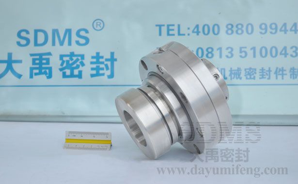 ????? 該機械密封針對重型化工泵的運行特點專門設計了冷卻水導流套,更加適應高溫、高速、高壓的工況。選材上,該機封有硬質合金、304、氟橡膠組對和碳化硅、316L、全氟醚組對,前者適用于中等腐蝕的堿性介質,后者適用于強腐蝕的磷酸、鹽酸工況。?